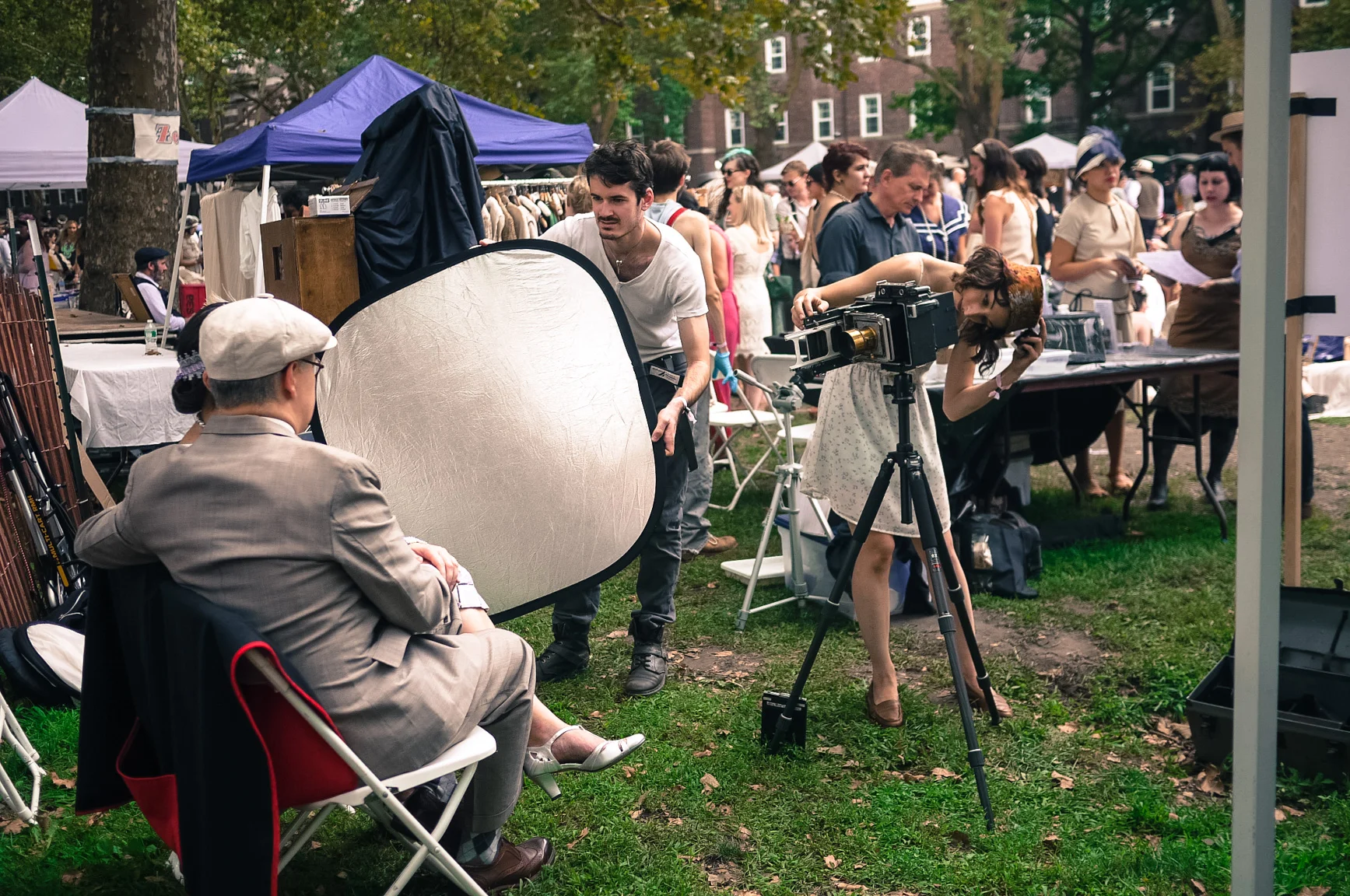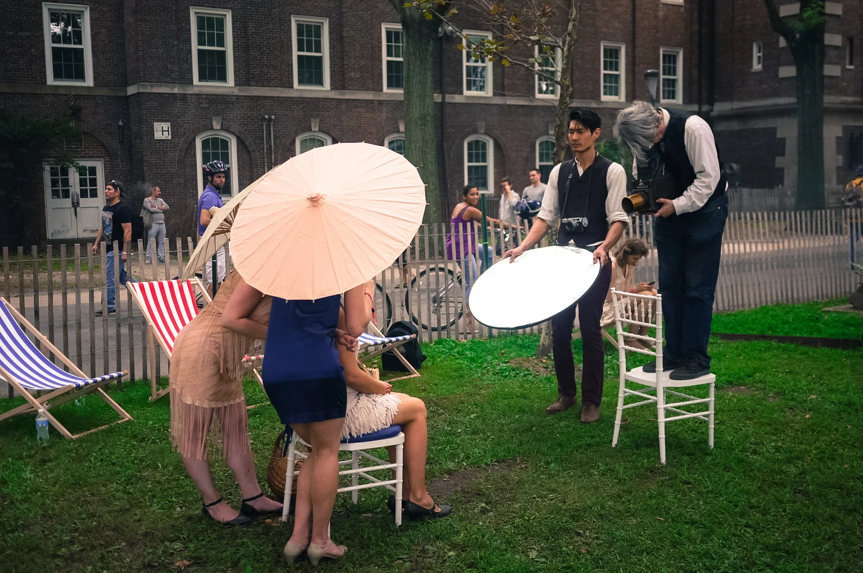 "The photos that were taken by Penumbra Foundation WERE antique cameras! No digital equipment, what-so-ever. On the lawn they were taking Tintype portraits, developing them in chemical baths on the spot, and in the Gatsby area they were shooting with Polaroid film. They are one of the few organizations left that still practices and preserves traditional photo techniques." - Jen Zak